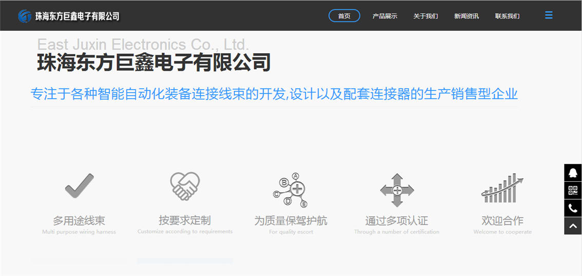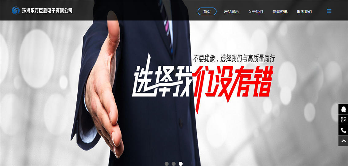 服务项目:负责珠海东方巨鑫电子有限公司自适应官网建设,可自动适应屏幕大小,手机PC版通用。