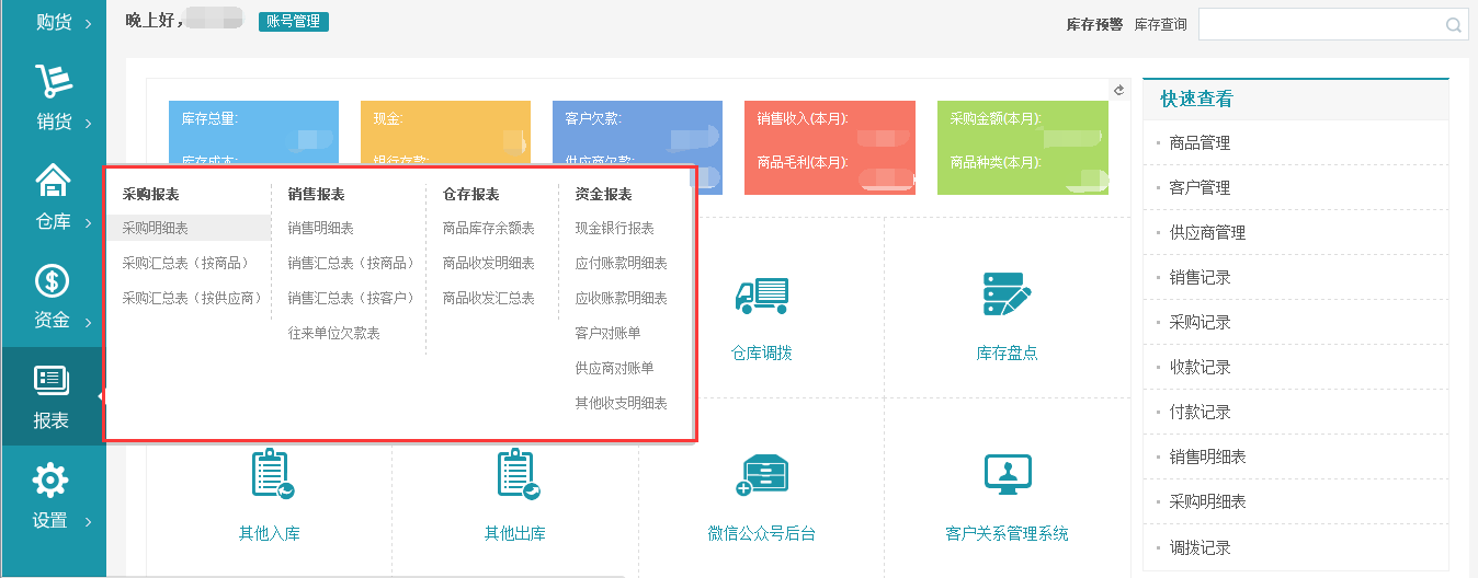 多种类型报表-提供多种报表,可查询出入库记录,成本毛利计算,进行客户、供应商往来对账及查询银行流水账。