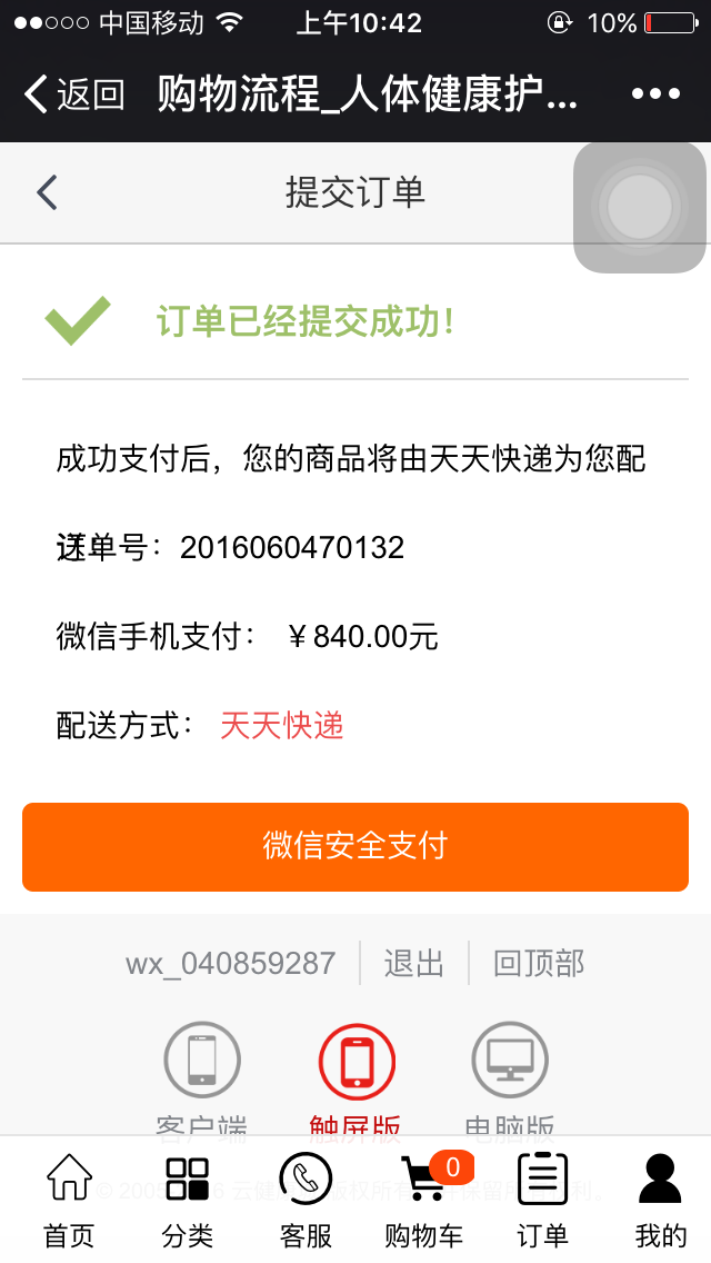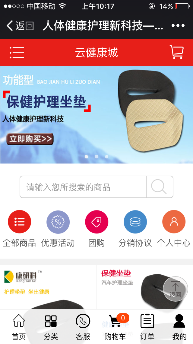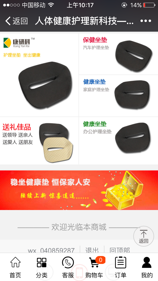 服务项目:负责珠海横琴康研科贸易有限公司微信商城建设,包括商城框架搭建、图片设计、加入购物车、商品分类、个人中心、支付功能建设等。